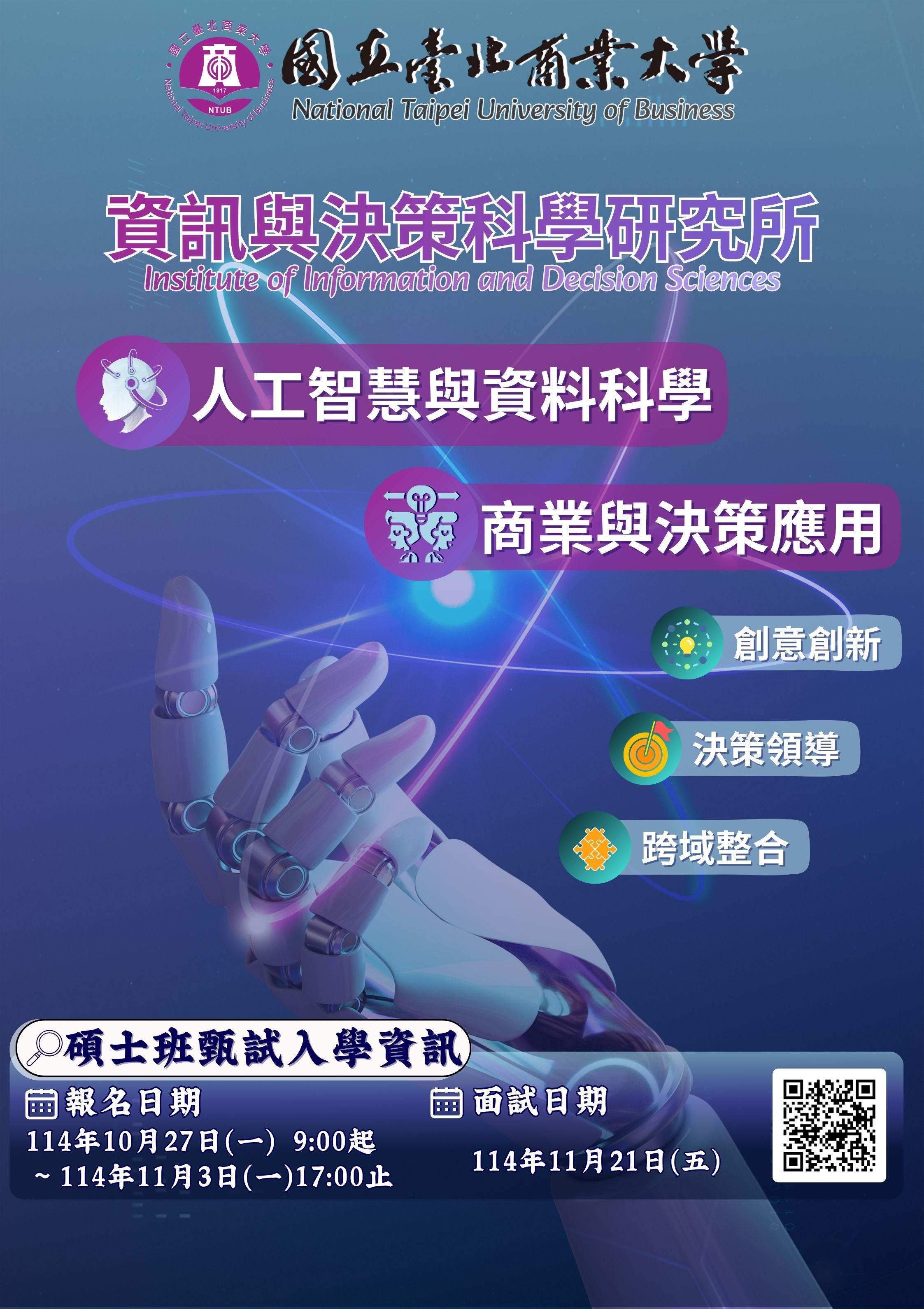 【公告】115學年度資訊與決策科學研究所碩士班甄試入學招生資訊