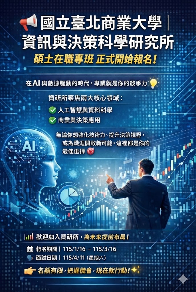 【公告】115學年度資訊與決策科學研究所碩士班研究所碩士在職專班(EMBA)招生資訊
